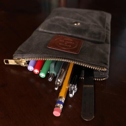 Earth & Fiber Co. Waxed Canvas Artist Pouch for Pencils, Pens, Markers