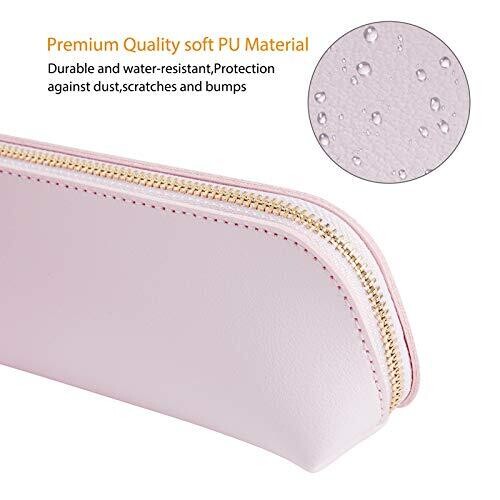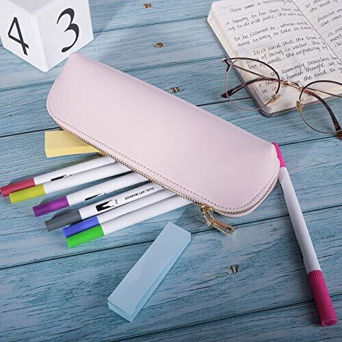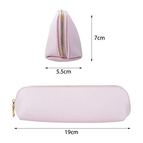 Fyore Leather Pencil Case - Slim Pen Bag with Metallic Zipper, Pink