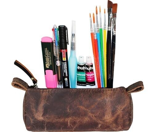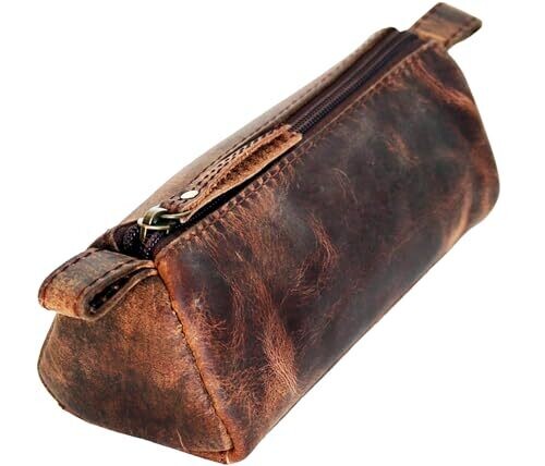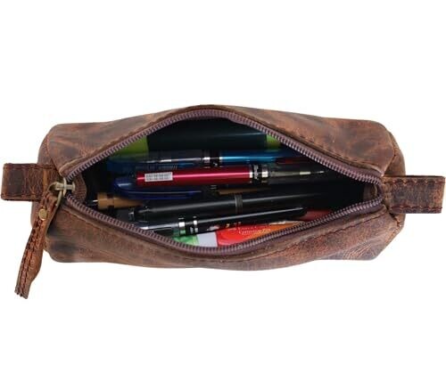 Heritage Leather Vintage Pencil Case with Zipper – Durable Art Organizer