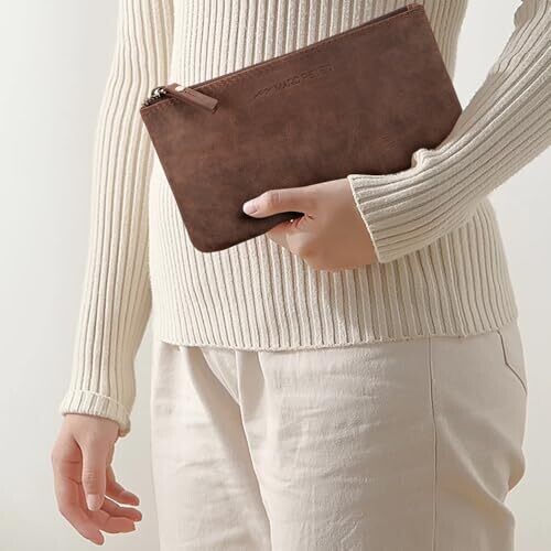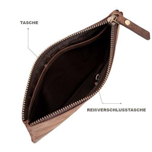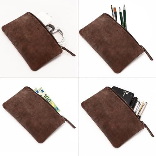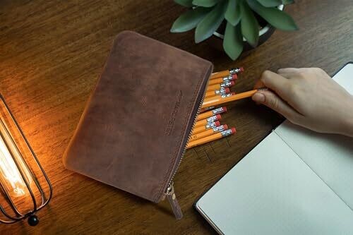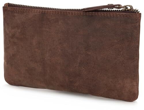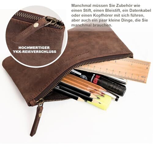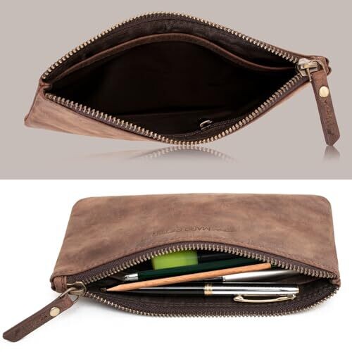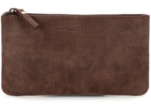 - Marc Peter® Vintage Austin Leather Pencil Case with YKK Zip in Dark Brown