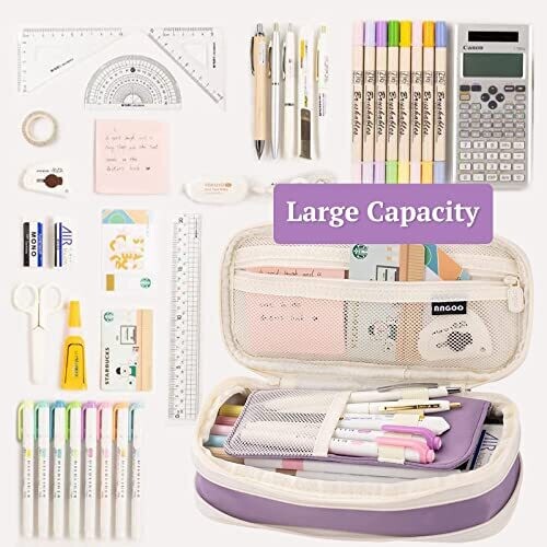 - Discover a stylish and high-capacity pencil case that keeps your school and study essentials organized in one chic, purple package.