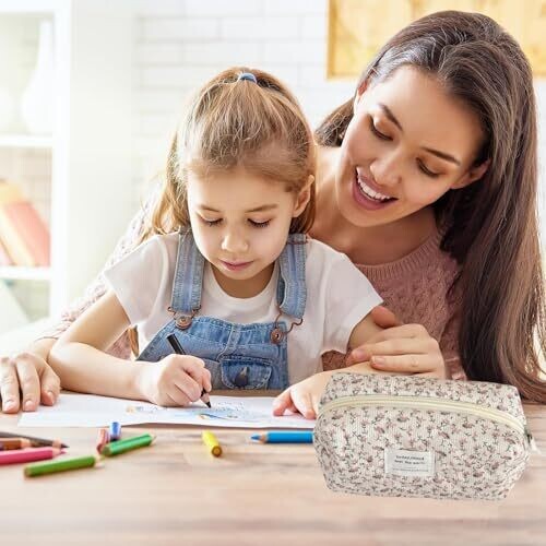 Qiwenr Floral Cosmetic Bag and Pencil Case — Versatile Travel Organizer