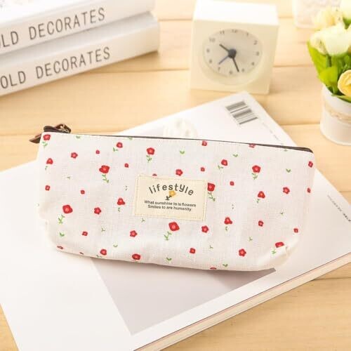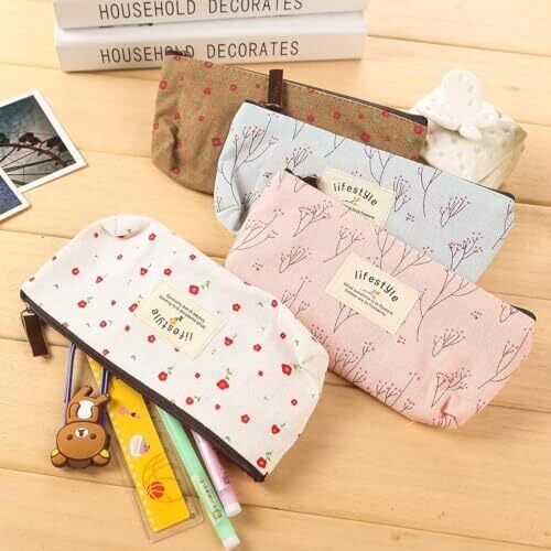 - Charming Rileryeol Pencil Case set featuring cute floral designs on durable canvas, perfect for organizing daily supplies with a touch of whimsy.