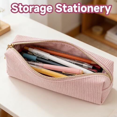 Shingidea Corduroy Large Capacity Pencil Case – Soft Pink Organizer for School