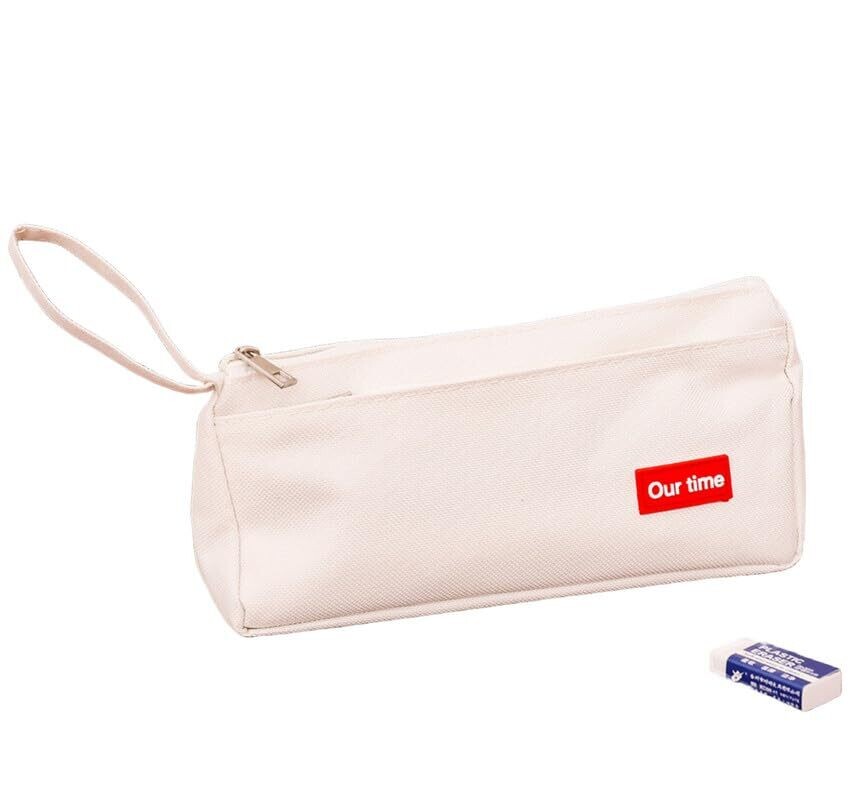 Simple Pencil Case Pouch – Makeup Bag & School Box, Zipper Organizer, White