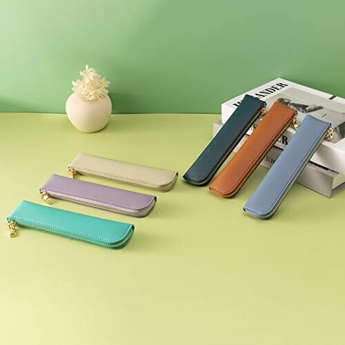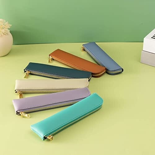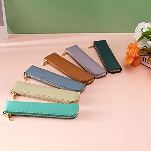 Sluxa Leather Pencil Case - Slim Soft Leather Pouch with Zip for Work