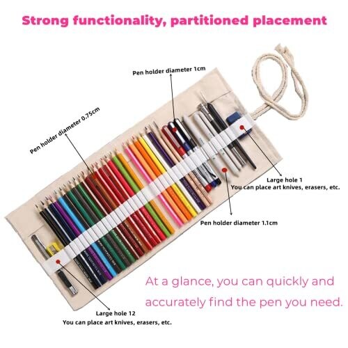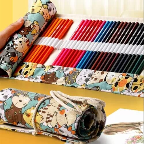 YZDAUD Roll Up Pencil Case: Handmade Canvas Organizer for 48 Slots