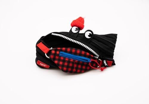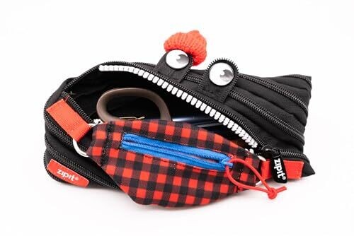 - Discover the Zipit ZIPIT Pencil Case Double Pouch Monster in Black Tartan — a playful and practical way to keep your pencils, pens, and small stationery organized.