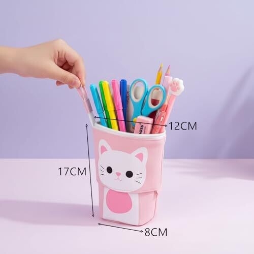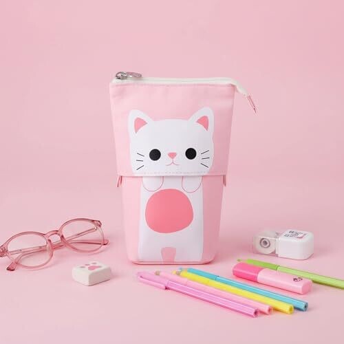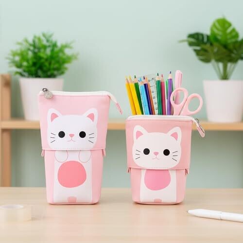 Auroly Telescopic Pencil Pouch – Cute Cat Case for School and office Use