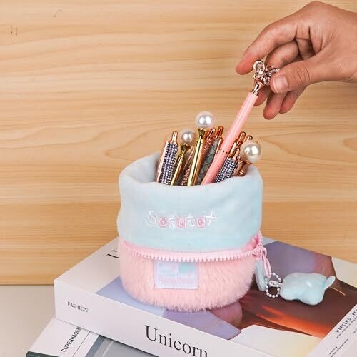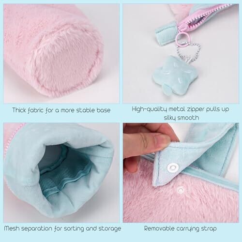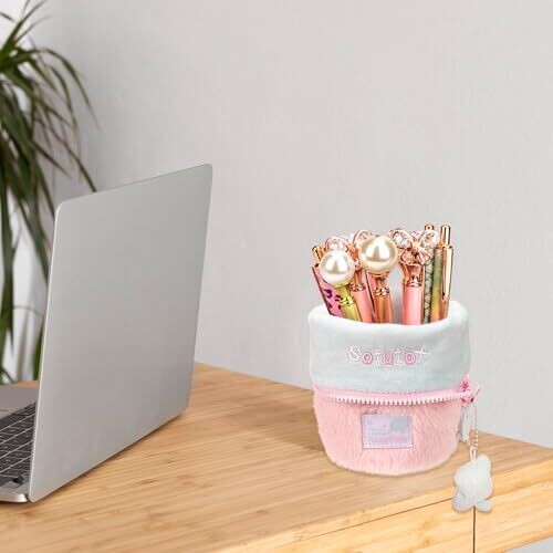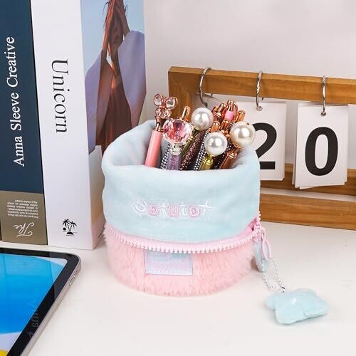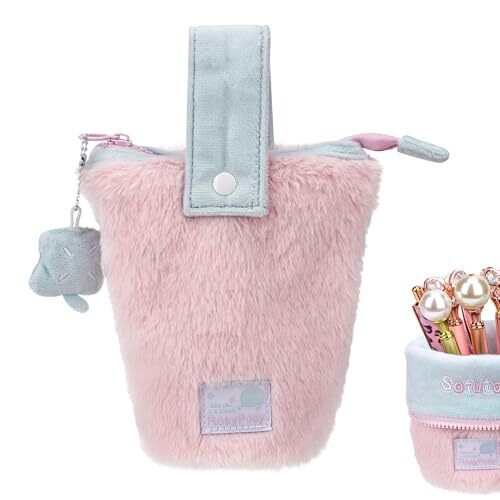 Biiange Plush Pencil Bag Standing Pouch with Big Capacity