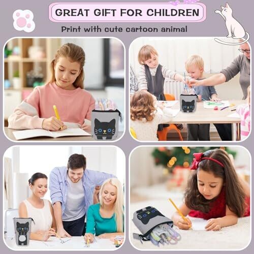 - A charming, practical gift for kids, students, and art lovers, available in stylish brown and playful black cat patterns.