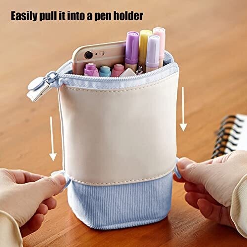 QANYEGN Stand Up Pencil Organizer Case – 5 Colors, Telescopic Holder