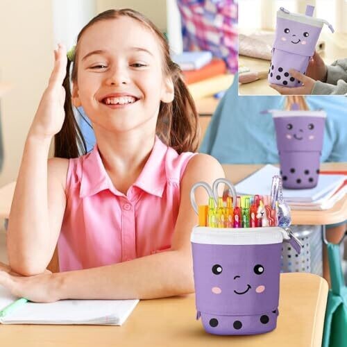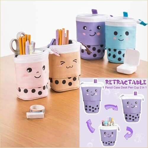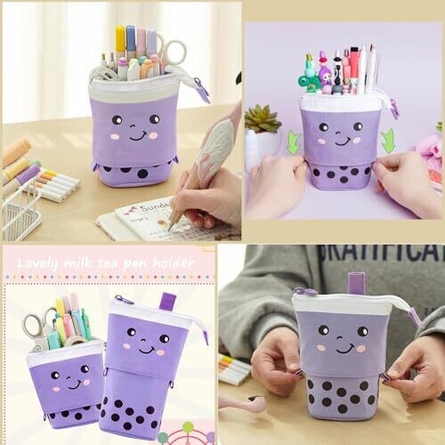 - Taicols Cute Milktea Pen Pencil Telescopic Holder is a playful, space-saving organizer designed to hold pencils, pens and small cosmetics in a compact, easy-to-carry form.